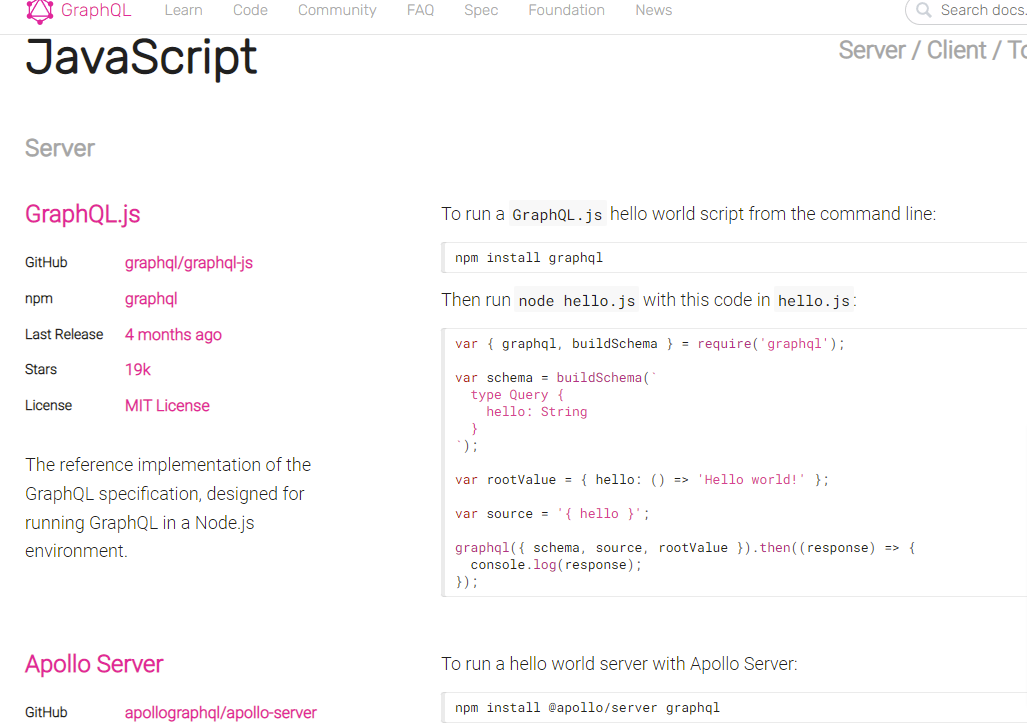 And sample code (like in the case of GraphQL).