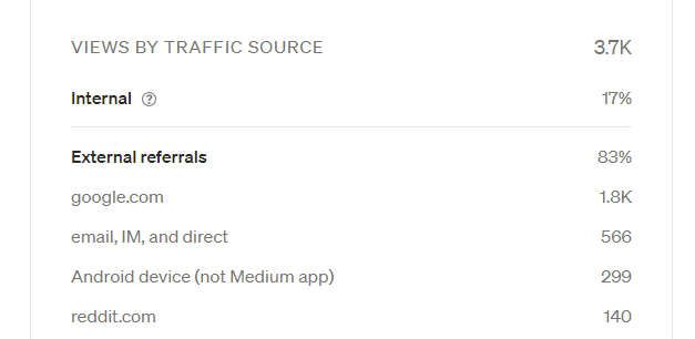 Presently, this piece sits at 3.7k overall views with the majority of traffic coming from Google.